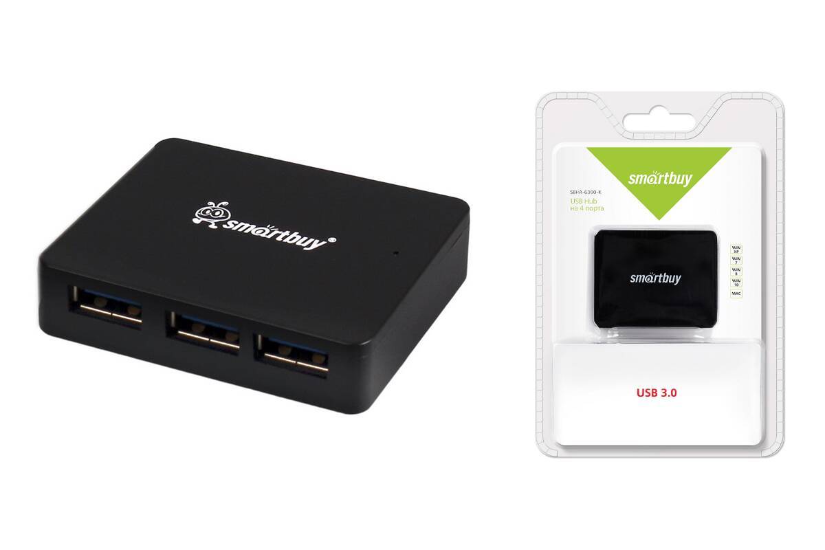 USB 3.0 Хаб Smartbuy 6000, 4 порта, черный (SBHA-6000-K)