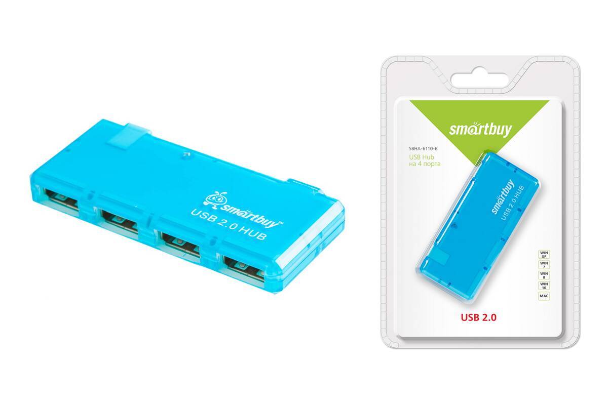 USB 2.0 Хаб Smartbuy 6110, 4 порта, голубой (SBHA-6110-B)