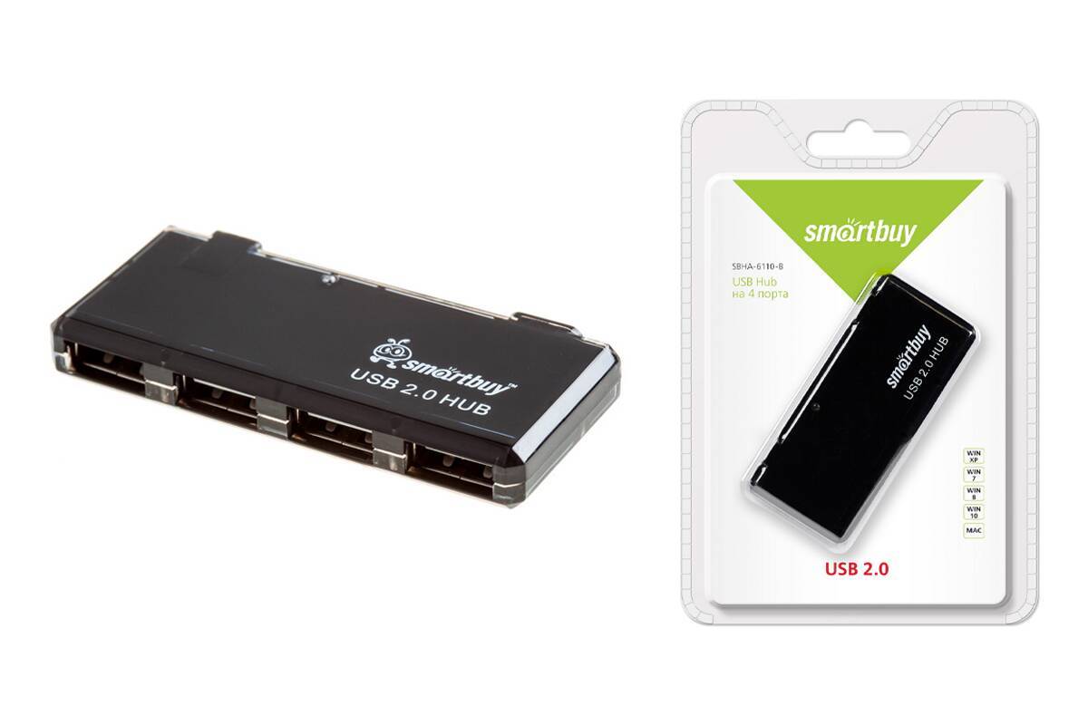 USB 2.0 Хаб Smartbuy 6900, 4 порта, черный (SBHA-6900-K)