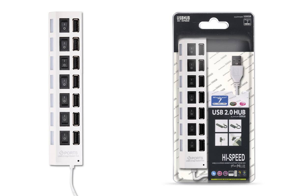 USB 2.0 хаб с выключателями, 7 портов, СуперЭконом, белый, SBHA-7207-W