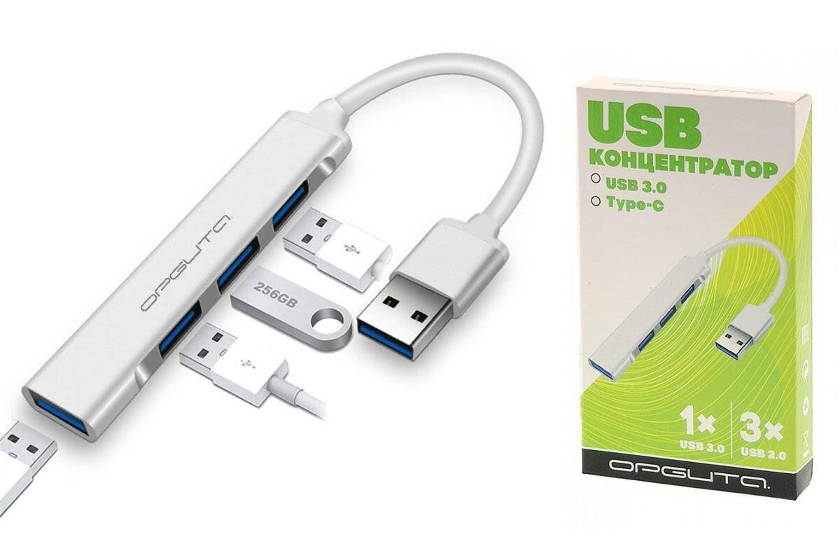 Разветвитель USB HUB Орбита OT-PCR23 USB 2.0/3.0 (3*USB) (серебристый)