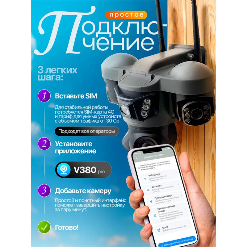 Видеокамера IP 4G Орбита OT-VNI68C (2MP x3, солнечная панель)