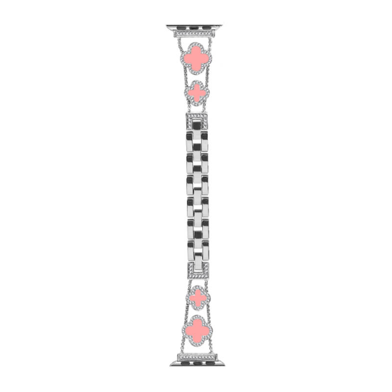 Ремешок для Apple Watch 38/40/41 mm AA металлический (со стразами+цветок, розовый)
