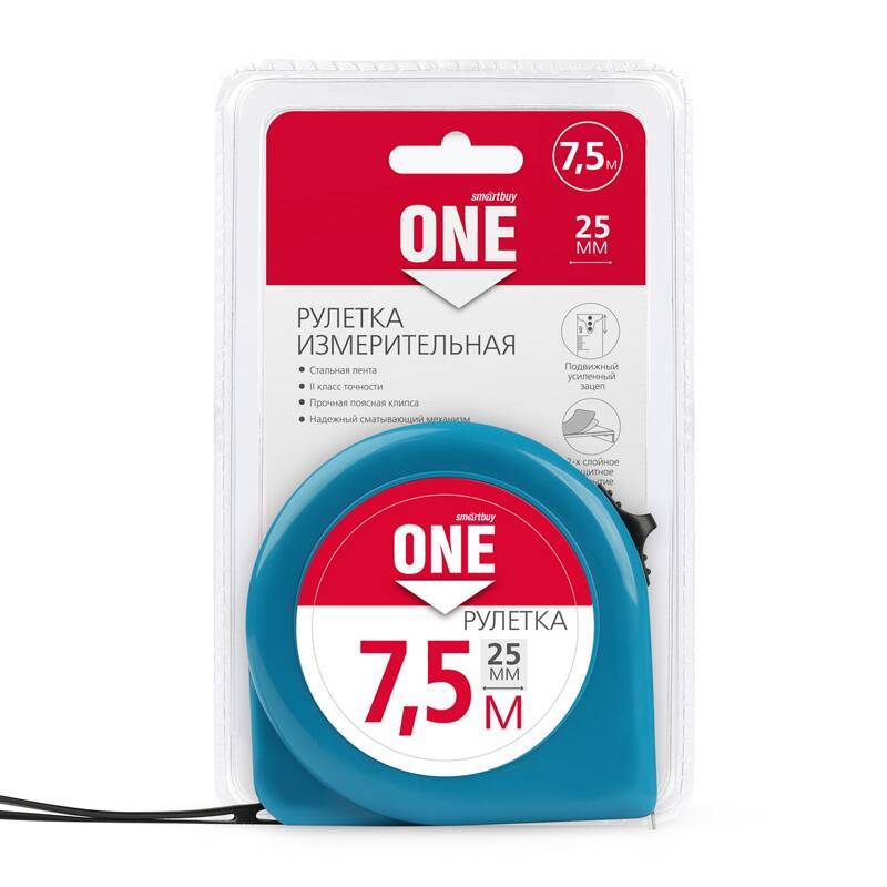 Рулетка измерительная,7.5мх25мм,пластиковый корпус,фиксатор,усиленный зацеп,Smartbuy OneTools/48