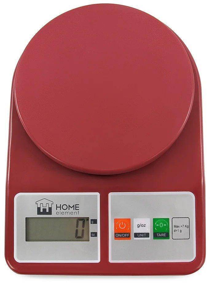 Весы кухонные HOME ELEMENT HE-SC930 красный гранат 7 кг, LCD Дисплей, Функция "Тара"