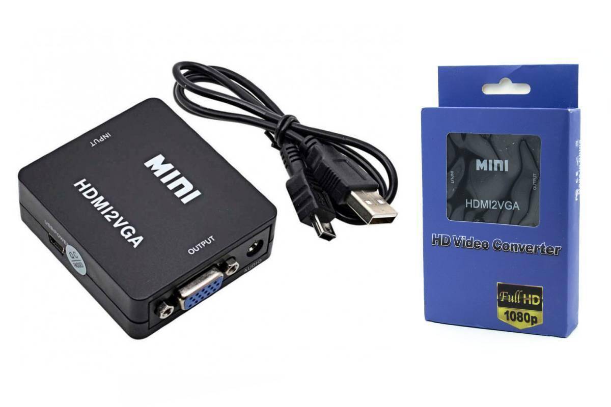 Конвертер переходник HDMI + jack 3.5 (мама) - VGA (папа) черный