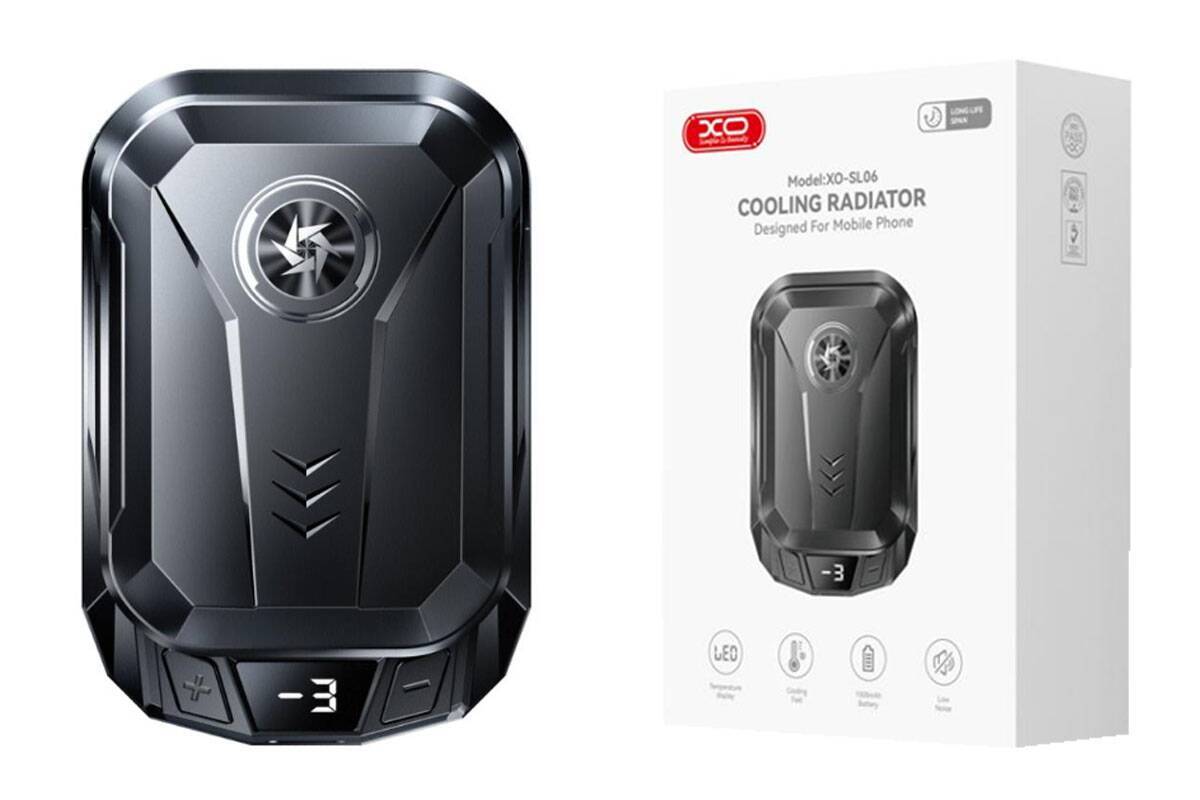 Игровой кулер XO SL06 Portable Rechargeable Battery Model Digital Intelligent Semiconductor Heat Sink (External Back Coin Battery 1500mAh) Black