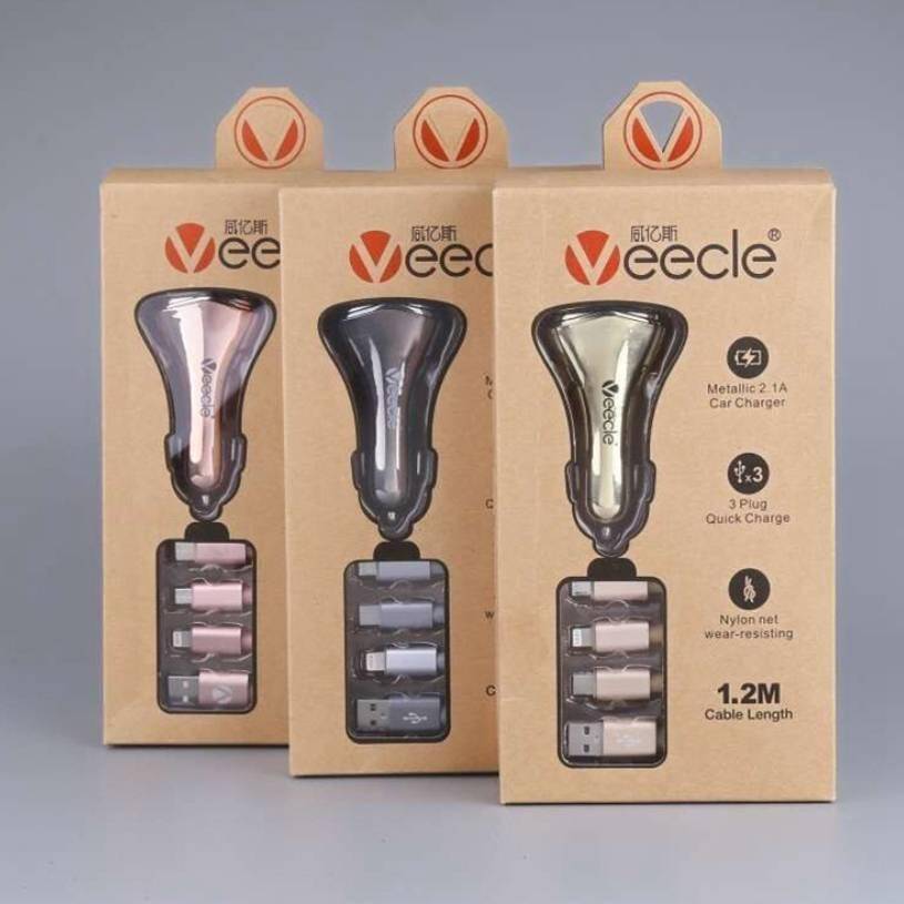 Автомобильное зарядное устройство АЗУ USB + кабель MicroUSB VEECLE HM-C13 MicroUSB/Type-C/iPhone (5B,2100mA) (золотистый)