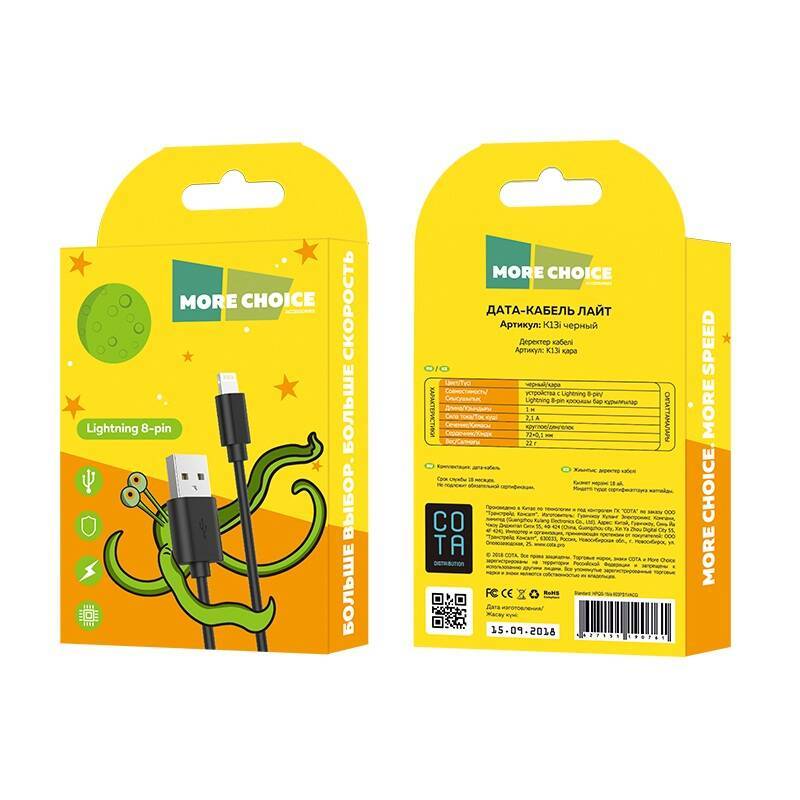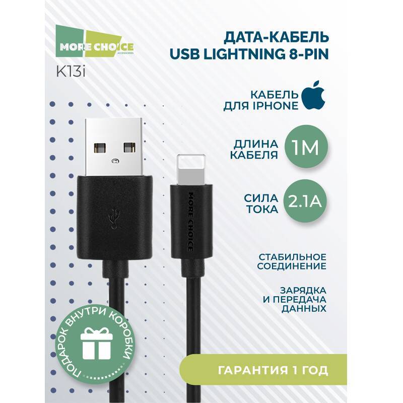 Кабель USB - Lightning More choice K13i TPE 2.4A 1м (Black) 20190079