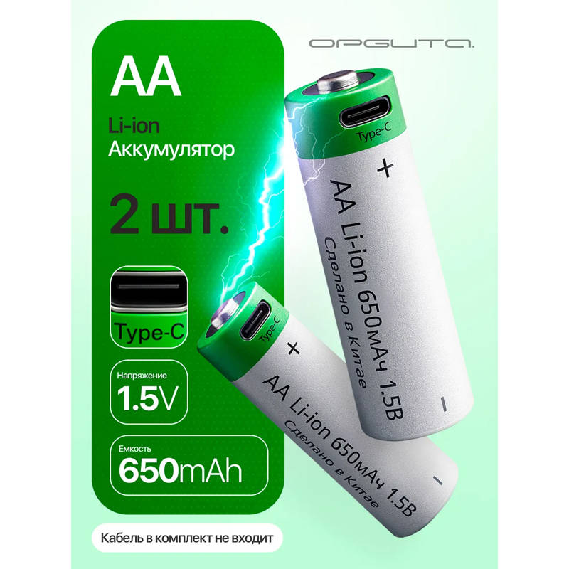 Аккумулятор Орбита AA R6 (650мАч, Li-ion, 1.5В, Type-C) (УПАКОВКА 2шт)