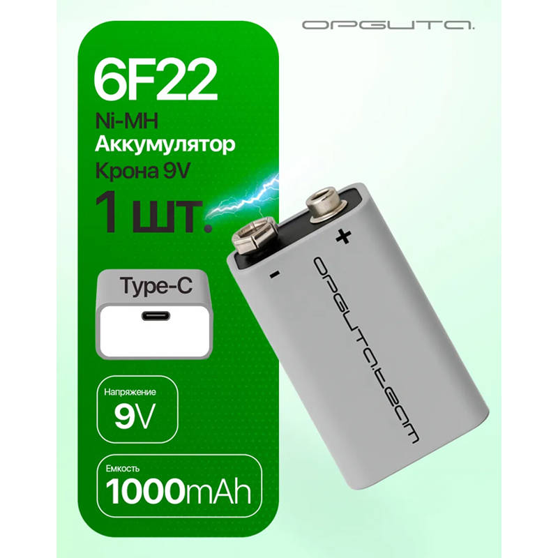 Аккумулятор Орбита 6F22 (1000мАч,Li-ion,9В,Type-C)
