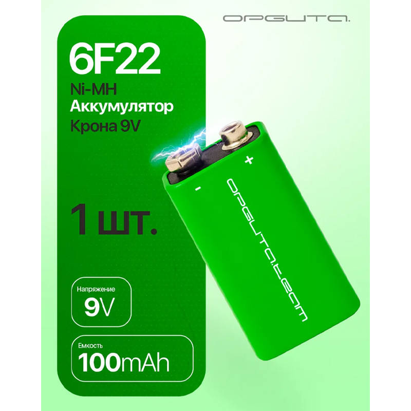 Аккумулятор Орбита 6F22 (100мАч,Ni-Mg,9В) Аккумулятор Орбита 6F22 (100мАч,Ni-Mg,9В)