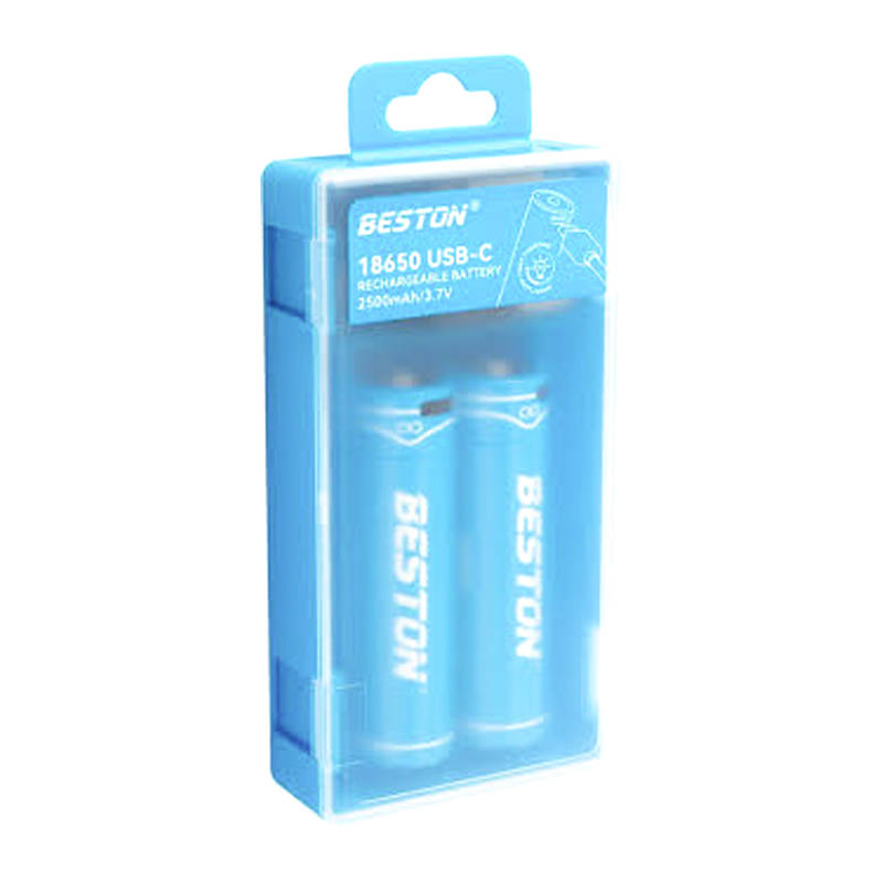 Аккумулятор 18650 BESTON 2 шт разъем USB-C 2000 mAh / 3,7V + кабель (цена за 2 штуки)