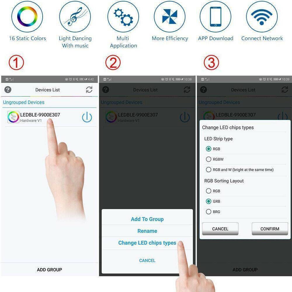 RGB (4pin, 3 цвета в одном чипе) Bluetooth контроллер использует приложение Hao Deng (совместима с IOS 9.0/ Android 4.4 / Bluetooth 4.0 и выше)