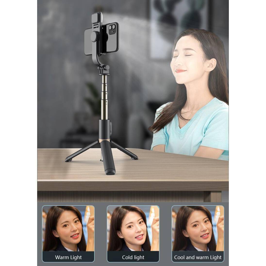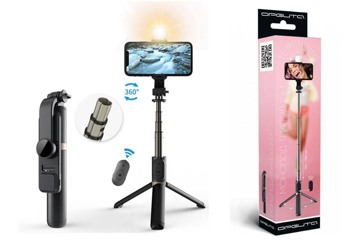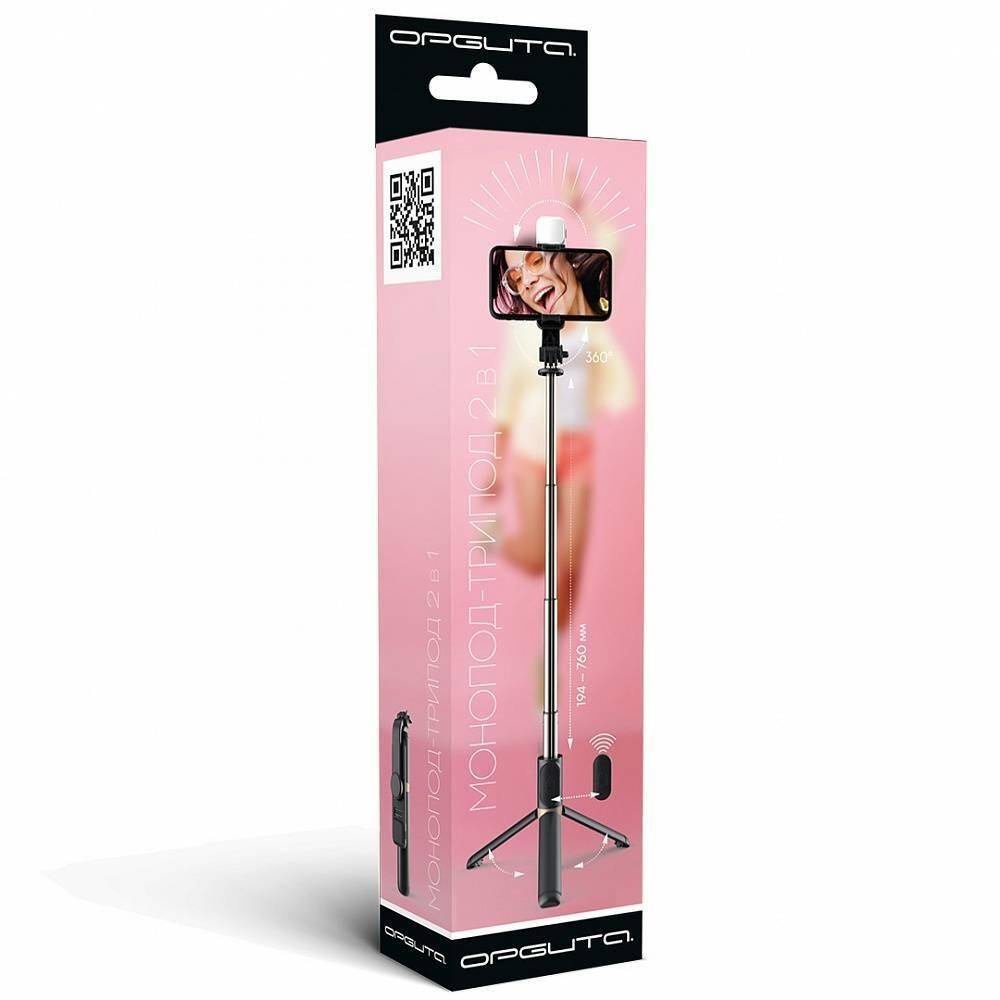 Монопод штатив для селфи и трипод 2в1 Орбита OT-SMH19 (194-760мм, пульт Bluetooth, LED) 20057287