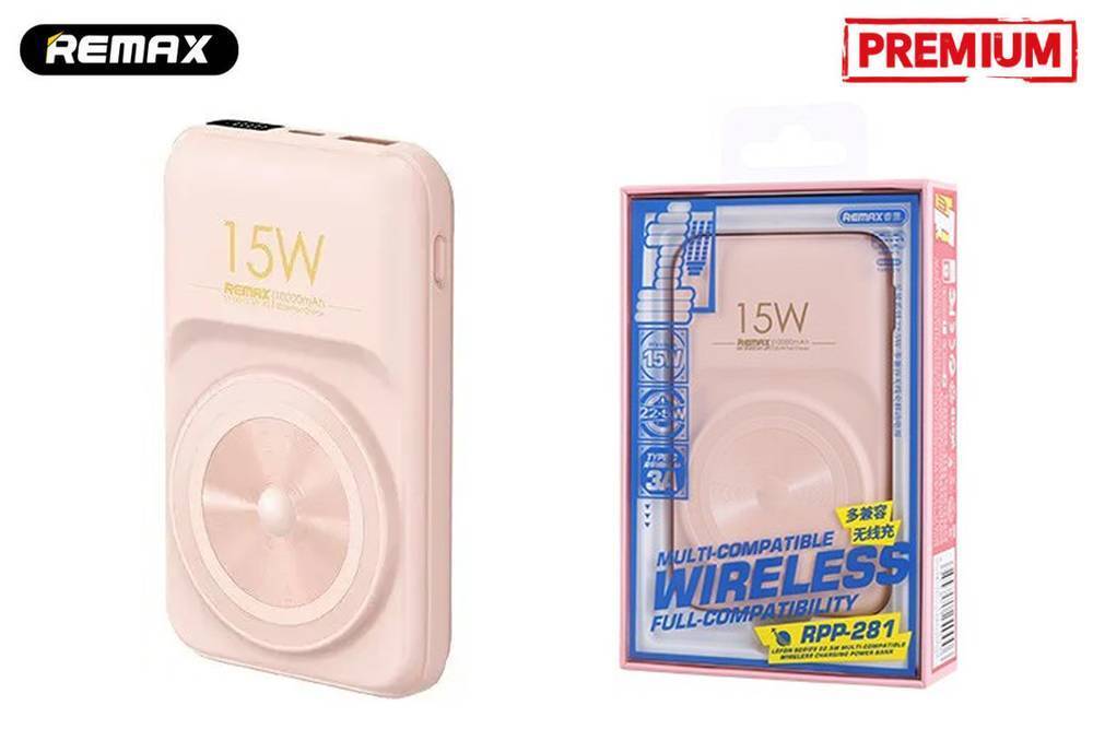 Универсальный дополнительный аккумулятор Power Bank REMAX RPP-281 Lefon 22.5W wireless charging (10000 mAH) (Розовый) Универсальный дополнительный аккумулятор Power Bank REMAX RPP-281 Lefon 22.5W wireless charging (10000 mAH) (Розовый)