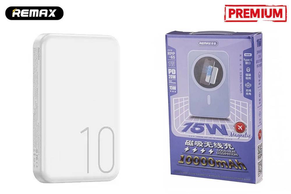 Универсальный дополнительный аккумулятор Power Bank REMAX RPP-65 usion 15W magnetic wireless (10000 mAh) (Белый) Универсальный дополнительный аккумулятор Power Bank REMAX RPP-65 usion 15W magnetic wireless (10000 mAh) (Белый)