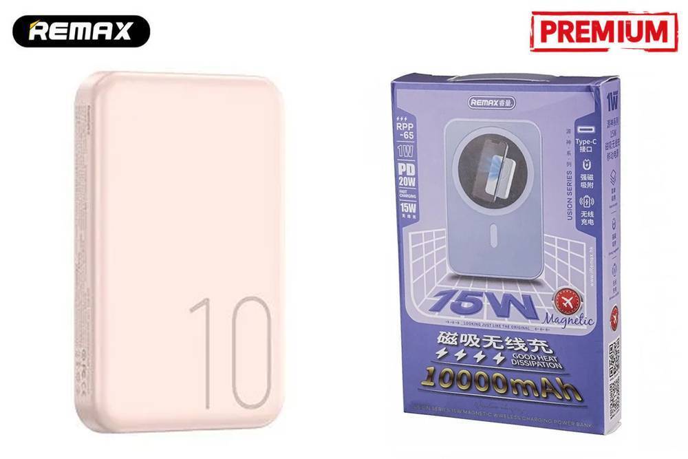 Универсальный дополнительный аккумулятор Power Bank REMAX RPP-65 usion 15W magnetic wireless (10000 mAh) (Розовый) Универсальный дополнительный аккумулятор Power Bank REMAX RPP-65 usion 15W magnetic wireless (10000 mAh) (Розовый)