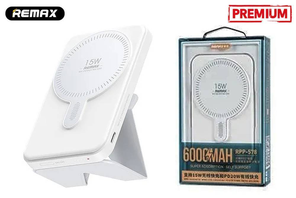 Универсальный дополнительный аккумулятор Power Bank Remax RPP-578 pro 15W magnetic wireless с подставкой (6000 mAh) (белый)
