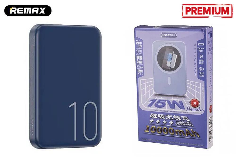 Универсальный дополнительный аккумулятор Power Bank REMAX RPP-65 usion 15W magnetic wireless (10000 mAh) (Голубой) Универсальный дополнительный аккумулятор Power Bank REMAX RPP-65 usion 15W magnetic wireless (10000 mAh) (Голубой)