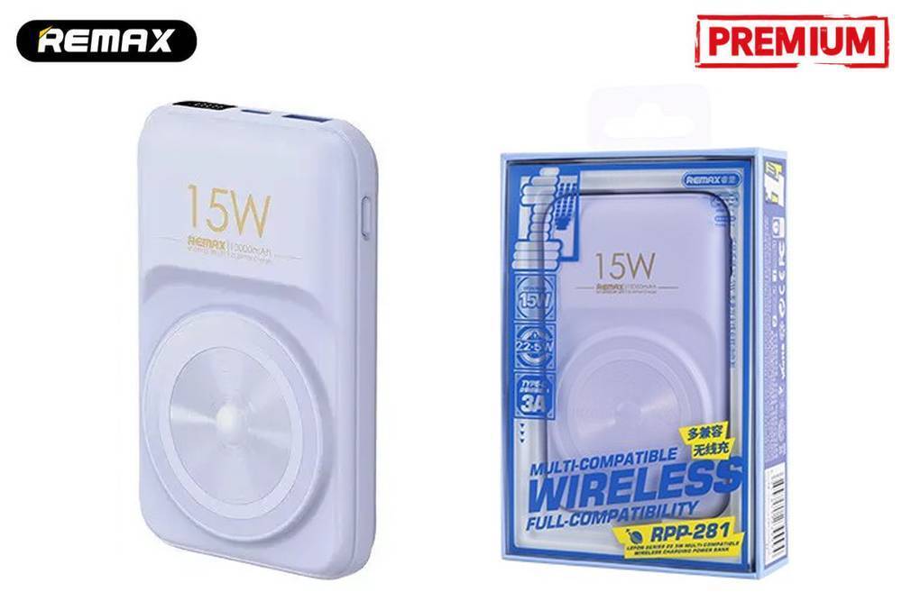 Универсальный дополнительный аккумулятор Power Bank REMAX RPP-281 Lefon 22.5W wireless charging (10000 mAH) (Сиреневый) Универсальный дополнительный аккумулятор Power Bank REMAX RPP-281 Lefon 22.5W wireless charging (10000 mAH) (Сиреневый)