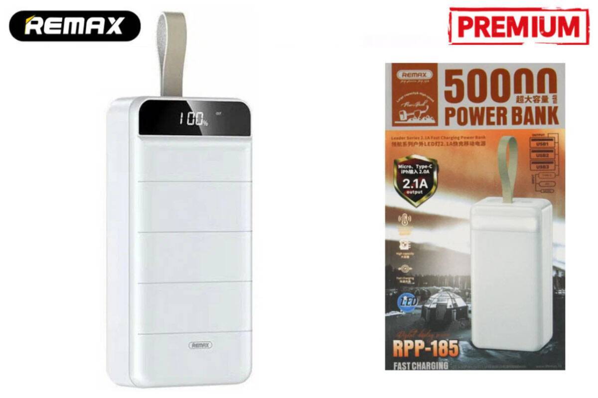 Универсальный дополнительный аккумулятор Power Bank REMAX RPP-185 Leader series 2.1A fast charging 50000mAh White Универсальный дополнительный аккумулятор Power Bank REMAX RPP-185 Leader series 2.1A fast charging 50000mAh White