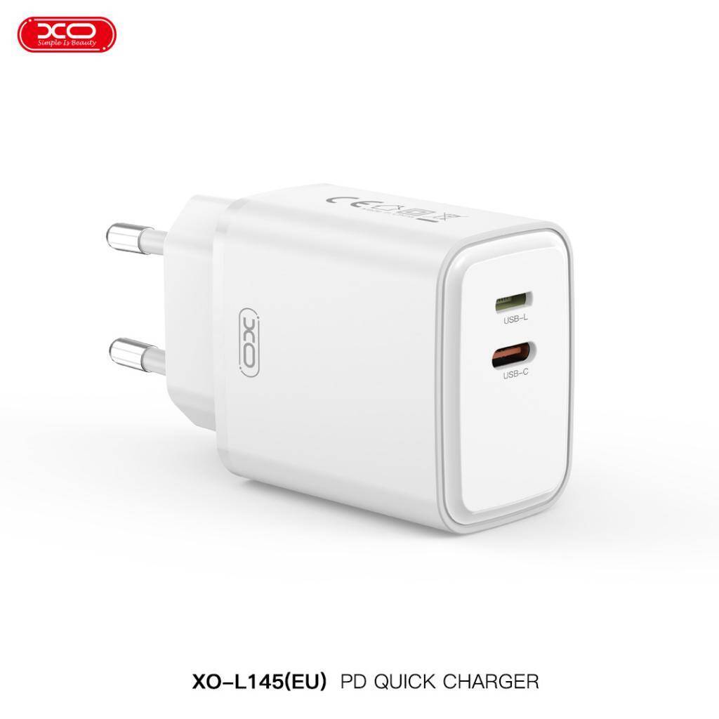 Сетевое зарядное устройство USB-C + USB-L (Lightning) + кабель Lightning - Type-C XO L145 20W Bi-directional Reverse Charger Fast Charger White 20192951