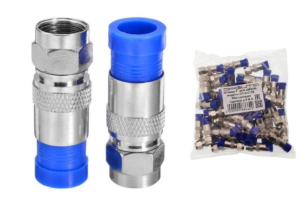 Переходник для ТВ кабеля Орбита OT-AVT18 штекер F компрессионный-обжимной (RG-6) (УПАКОВКА 50ШТ)