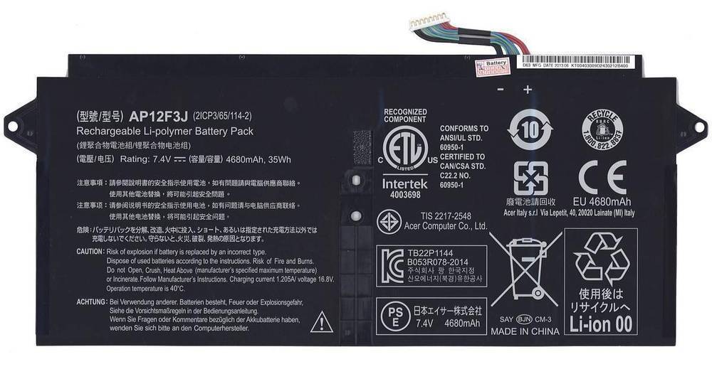 Аккумулятор AP12F3J для ноутбука Acer Aspire S7-391 7,4V 4680mAh 35Wh ORG Аккумулятор AP12F3J для ноутбука Acer Aspire S7-391 7,4V 4680mAh 35Wh ORG