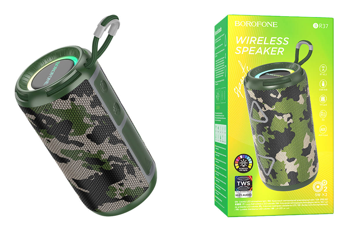 Портативная беспроводная колонка BOROFONE BR37 Noble sports (зеленый камуфляж) Портативная беспроводная колонка BOROFONE BR37 Noble sports (зеленый камуфляж)