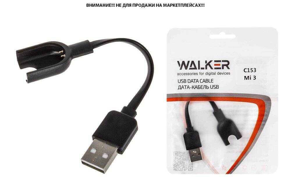 Зарядный кабель USB WALKER C153 для Xiaomi Mi Band 3, черный